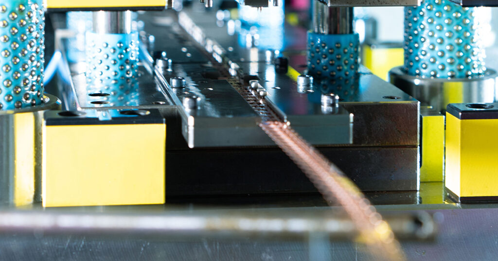 - 各種のプレス素材とめっき(協力会社と連携)に対応し、曲げなど複雑な形状も加工