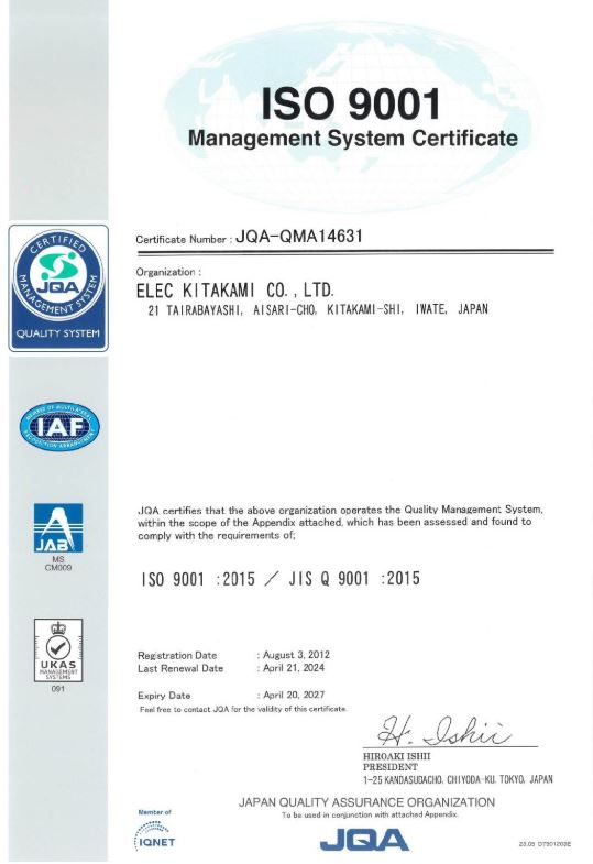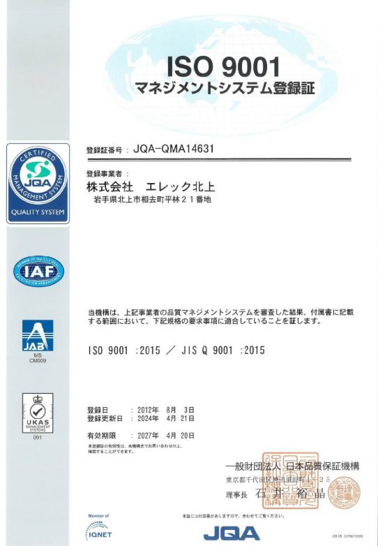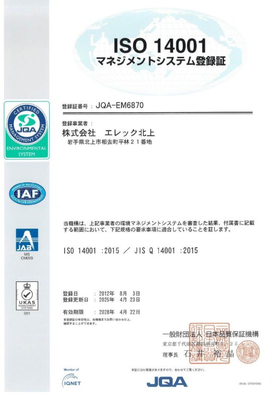 当社は、ISO9001とISO14001を認証取得しています。